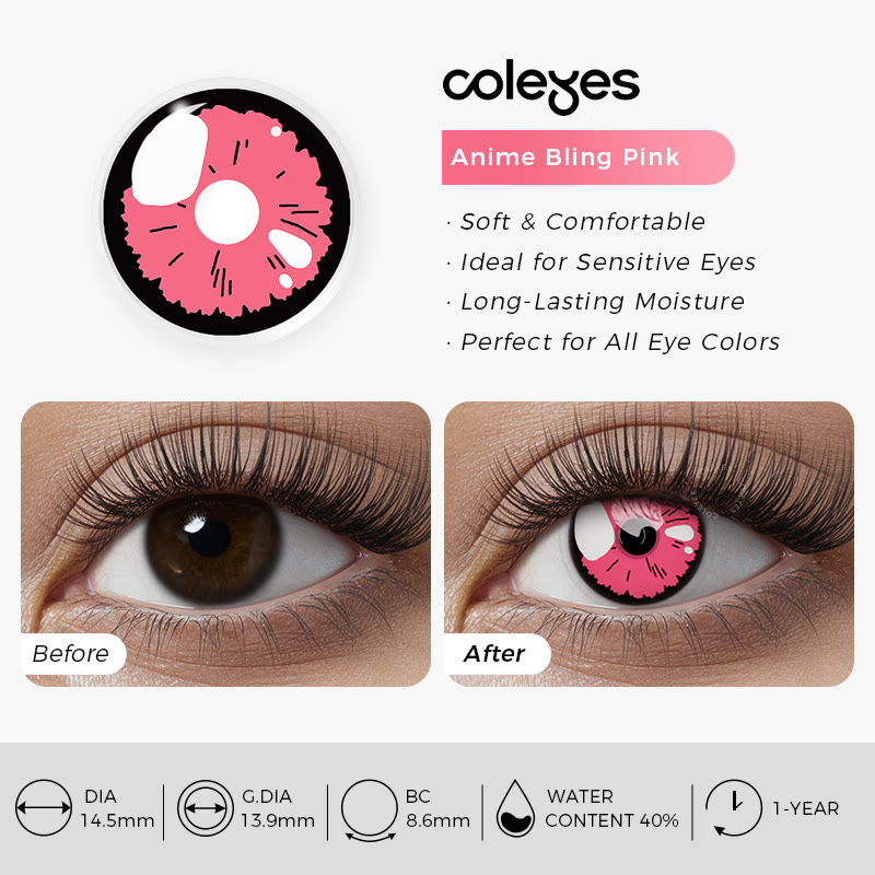 Coleyes Anime Bling Pink Yearly Cosplay Colored Contacts