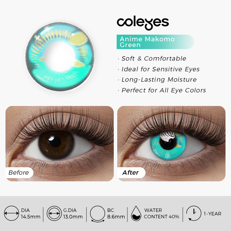 Coleyes Anime Makomo Green Yearly Prescription Cosplay Colored Contacts