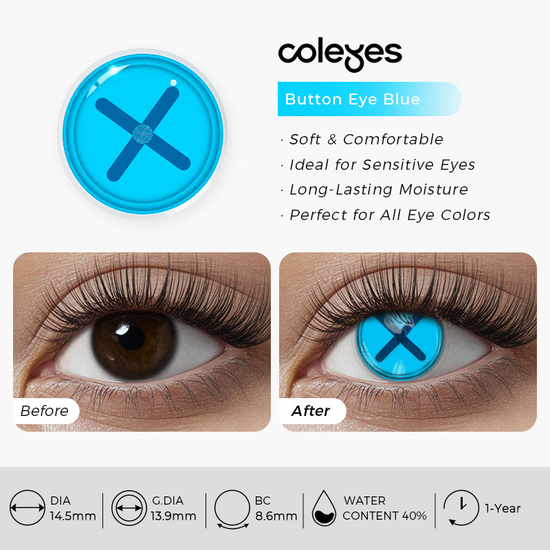 Coleyes Button Eye Blue Yearly Cosplay Colored Contacts