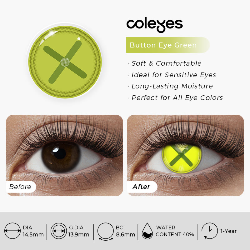 Coleyes Button Eye Green Yearly Cosplay Colored Contacts